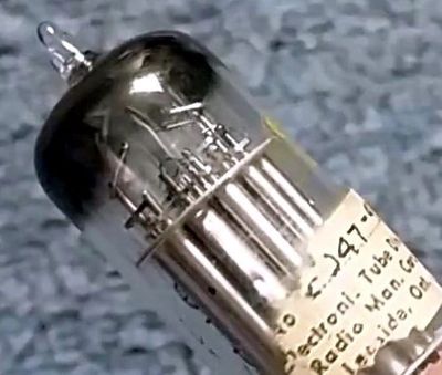 The Additron was an electron tube designed by Dr. Josef Kates, circa 1950, to replace the several individual electron tubes and support components required to perform the function of a single bit digital full adder. This is a photo of an actual Additron tube.